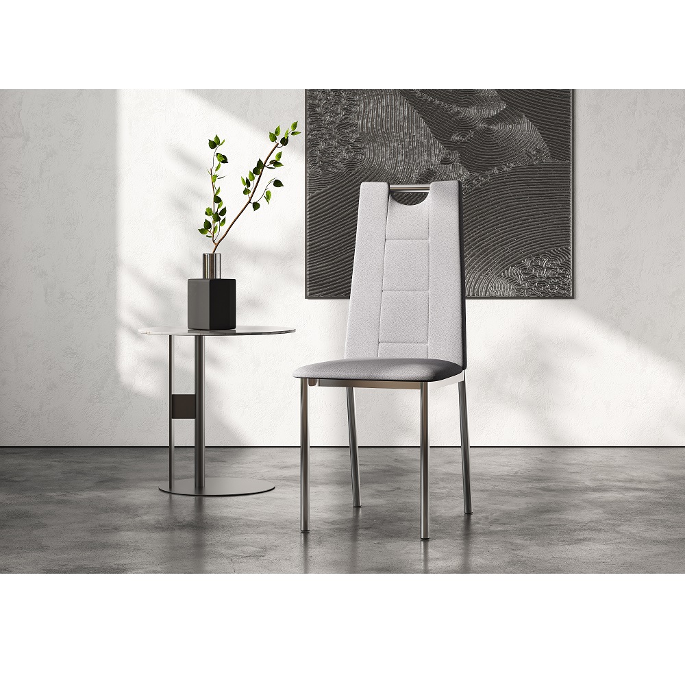 Орлеан - модель стула с удобной высокой спинкой оригинальной формы. Имеет хромированный каркас, мягкие сидушку и спинку, обтянутые рогожкой серого цвета. В комплекте 4 стула.